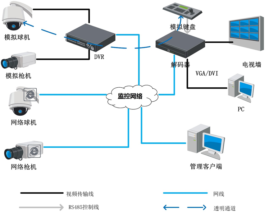 支持透明通道传输,可远程控制DVR或DVS上连接的云台;